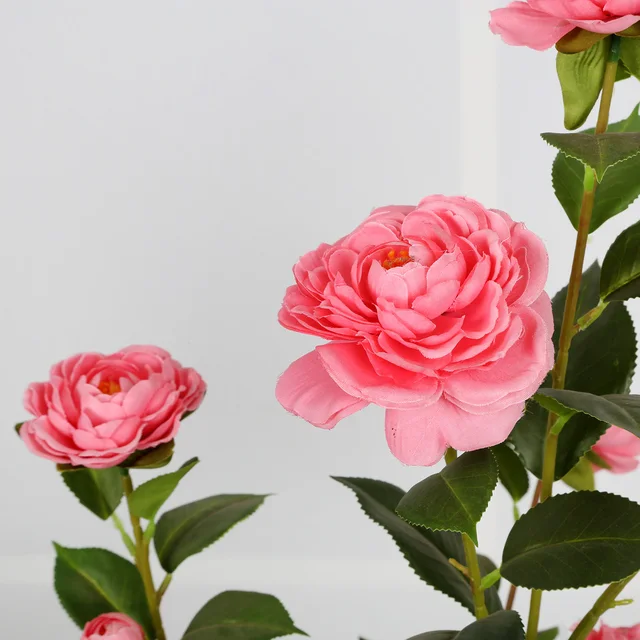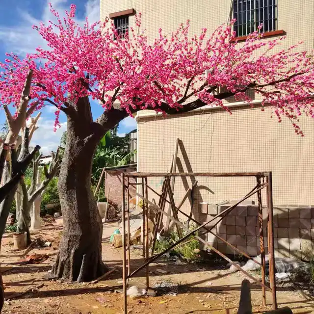 2025 Junpeng Artificial Peach Blossom Tree Pink Silk Fiberglass Trunk with Decorative Natural Features