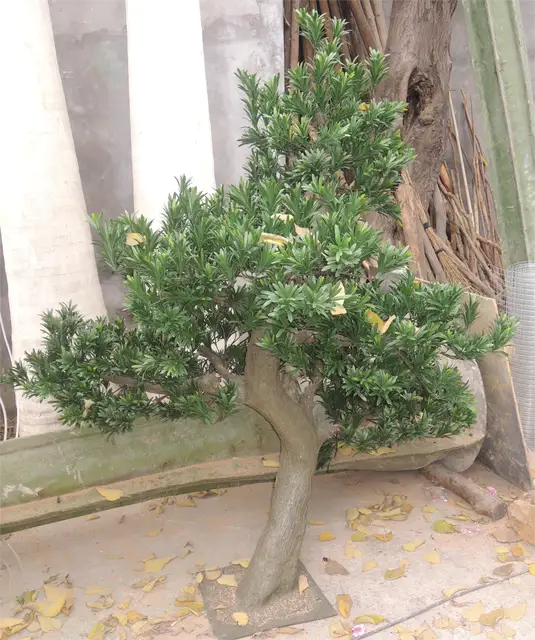 Custom Indoor Artificial Podocarpus Pine Trees 2m High Fiberglass Ornamental Trees for Home Decoration